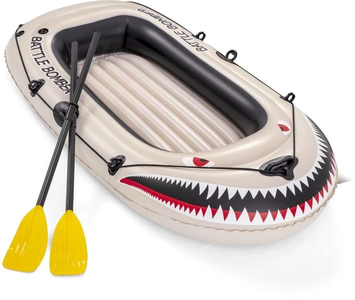 Wil je lekker dobberen op het water of op een rustig meertje varen? De Battle Bomber opblaasboot is ideaal voor een dagje waterpret. De Bestway opblaasbare boot is geschikt voor zowel volwassenen als kinderen. Door de leuke en stoere uitstraling ben jij niet te missen op het water!