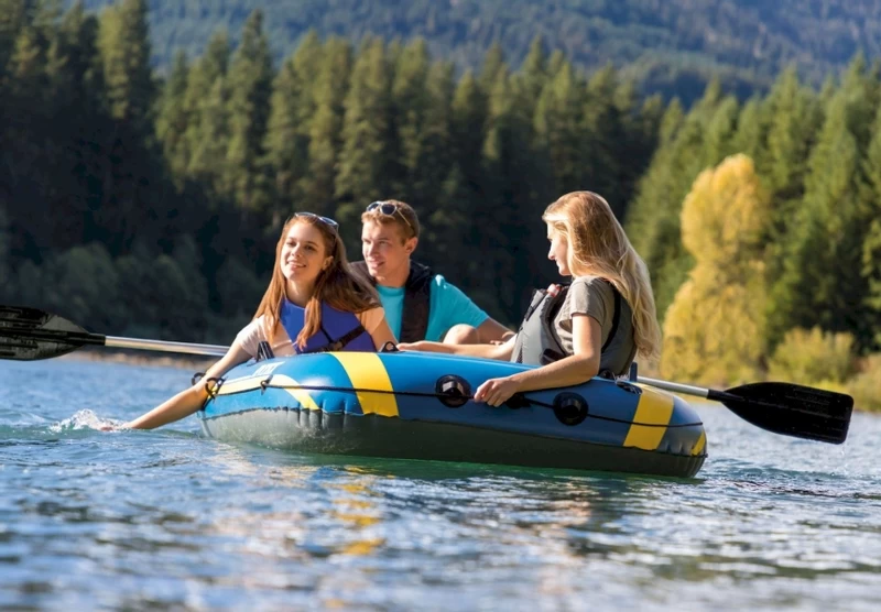 De Intex Challenger 3 is de perfecte opblaasboot om te gebruiken in het zwembad of op rustige meertjes. De Intex Challenger 3 is uitermate geschikt voor kinderen. Door de opvallende gele accenten kun je ze op ieder moment in de gaten houden. Omdat de Intex Challenger 3 drie luchtkamers heeft, kun je altijd veilig aan de kant komen, ook wanneer er een luchtkamer lek raakt. Om de veiligheid altijd te kunnen garanderen, is het aanbevolen een reddingsvest of zwemvest te dragen tijdens het varen met de Intex Challenger 3.