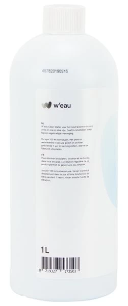W’eau Clear Water zet troebel water snel om in zuiver en helder spa water. Het is een kant-en-klare vloeibare oplossing waarmee je vuil neutraliseert en verwijdert. Gebruik het voor zeepresten, olie en andere kleine vuildeeltjes. Regelmatig gebruik zorgt voor een kristalheldere spa met gezond water. Wij adviseren het 1 keer per week te gebruiken voor het beste resultaat.